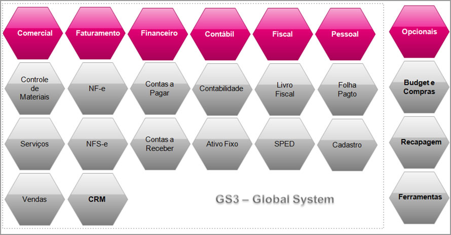 A solução GS3 – Global System - reúne todos os dados e procedimentos administrativos,