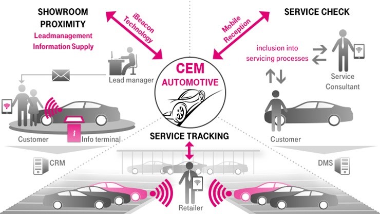 Com a solução CEM, a T-Systems oferece uma ferramenta em nuvem baseada na plataforma de CRM da Salesforce, para fornecer serviços automotivos individuais. É uma plataforma inteligente que analisa os dados do cliente e facilita uma conversa com o cliente alvo.