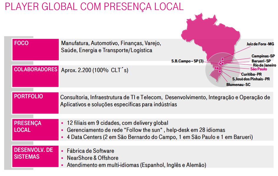 No Brasil, a T-Systems tem mais de 2.000 funcionários e possui onze filiais instaladas